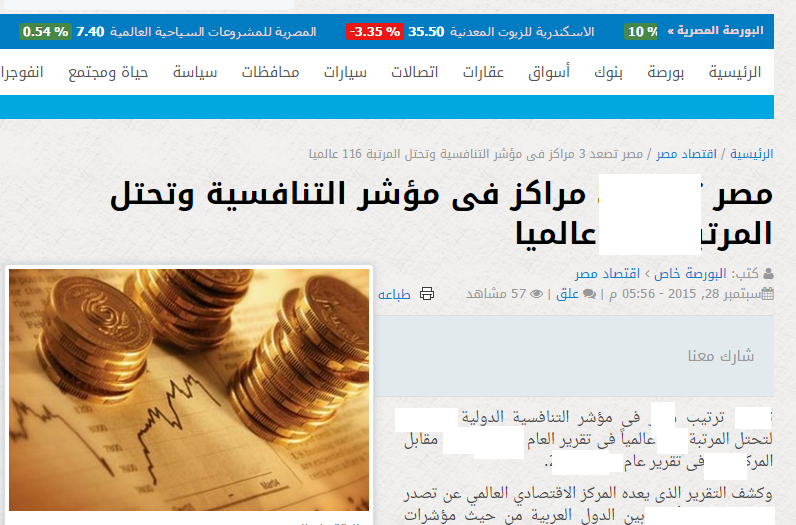سحبت جريدة البورصة خبر إعلان مؤشر التنافسية العالمية من على موقعها الإلكترونى وصفحاتها على مواقع التواصل الإجتماعى التزاما بحظر النشر الذى يتضمنه خبر الإعلان عن المؤشر حتى صباح الأربعاء.