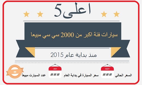 تنشر "البورصة نيوز" انفوجراف لاعلى 5 سيارات مبيعا في فئة اكبر من 2000 سي سي . <iframe style="overflow-y:hidden;" src="https://magic.piktochart.com/embed/8605836-مبيعات-2000-سي-سي" width="801" height="2649" frameborder="0" scrolling="no"></iframe>