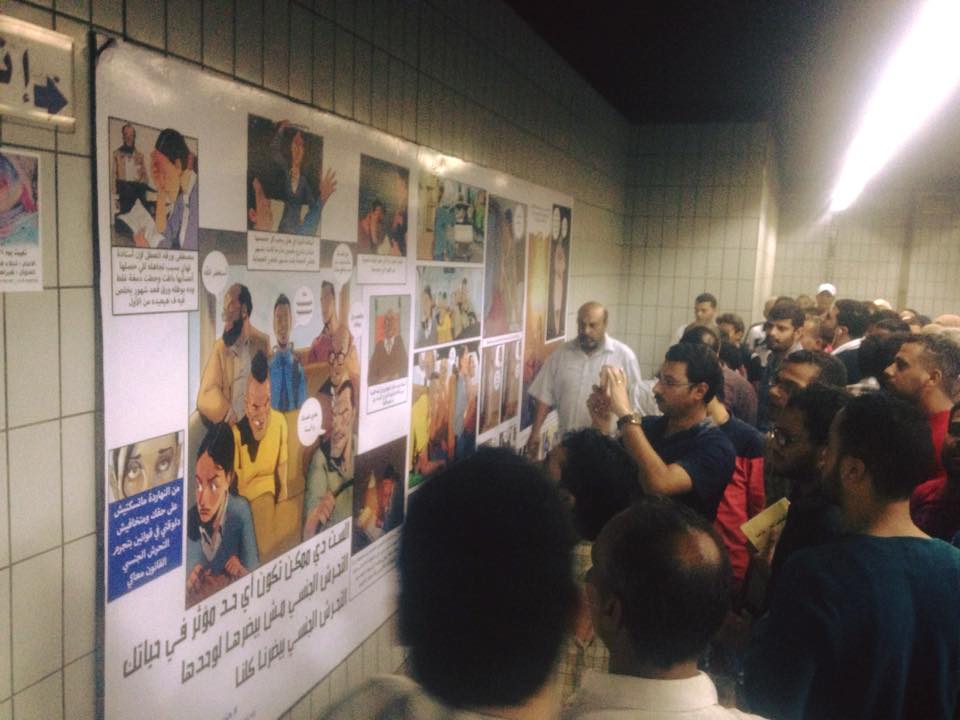 تم تعليق القصة المصورة فى محطة مترو الشهداء (اتجاه المرج)، وستليها محطات محمد نجيب والسادات، والعتبة؛ كما سيتم تعليق 12 بوستر بالتوالى شهرياً حتى نهاية الحملة فى محطات: جامعة القاهرة، وجامعة حلوان، ومنشية الصدر، حيث تعد هذه المحطات أكثر المحطات الحيوية وتتردد عليها أعداد هائلة من الجمهور بشكل يومي.