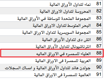 ووفقاً لترتيب شركات السمسرة الذى أعلنته البورصة المصرية عن الشهور التسعة الأولى من العام الجارى، لعدد 141 شركة، فإن «العلياء» جاءت فى المرتبة الـ88 بإجمالى تنفيذات بلغت 251.16 مليون جنيه، من خلال تنفيذ 10.24 ألف عملية وحصة سوقية 0.1%.