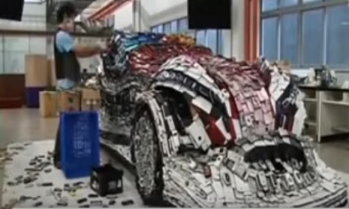 استطاع فنان تايواني فى أربعة أشهر من صنع سيارة مكونة من 25 ألف هاتف مستعمل معاد تدويرها.