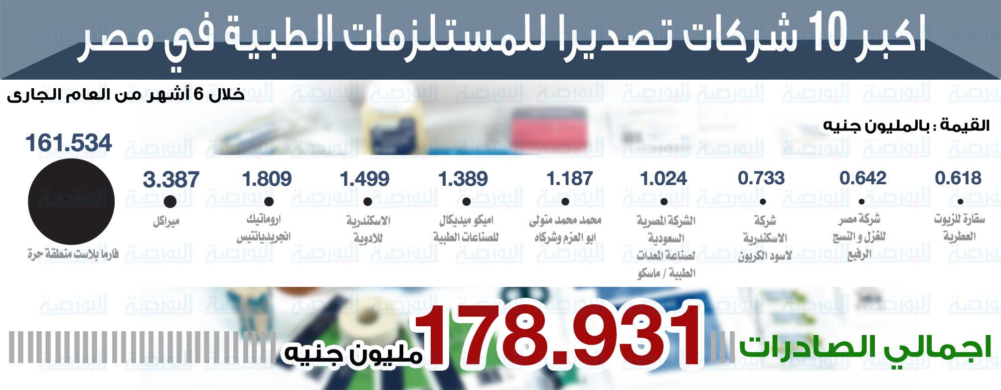 انفوجرافيك : اكبر 10 شركات تصديرا للمستلزمات الطبية في مصر