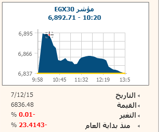 وارتفع مؤشر EGX20 المُحاكى لصناديق الإستثمار بنسبة 0.4% ليصل إلى مستوى 6784.2 نقطة، كما صعد مؤشر EGX70 للأسهم المتوسطة بنسبة 0.44% ليبلغ مستوى 370 نقطة، وارتفع مؤشر EGX100 الأوسع نطاقا بنسبة 0.27% إلى مستوي 779.2 نقطة