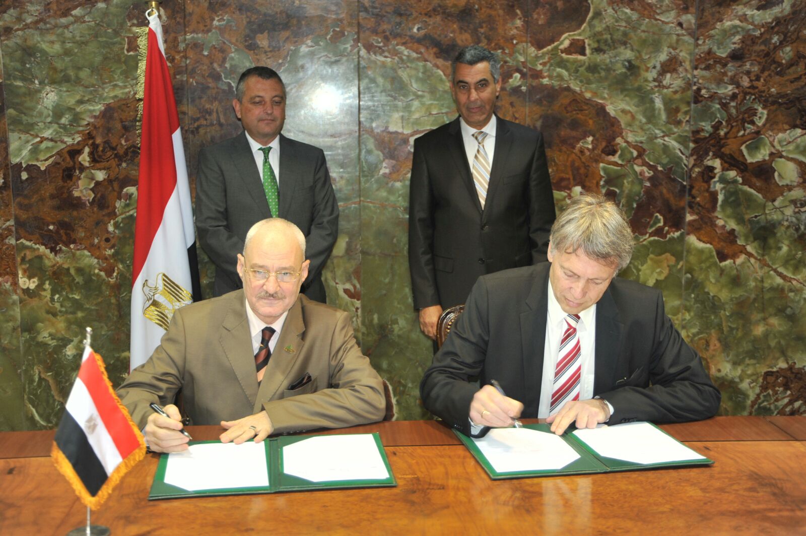 ووقع المذكرة كلا من الدكتور ماجد سلطان مستشار وزيرالنقل لنظم المعلومات ممثلاً عن وزارة النقل والسيد مايكل شتنزر نائب رئيس مجلس ادارة الشركة ممثلا عن الجانب النمساوي ، بحضور الدكتور سعد الجيوشي وزير النقل ، وجورج شتيلفرد سفير النمسا بالقاهرة ،و اللواء عادل ترك رئيس هيئة الطرق والكباري