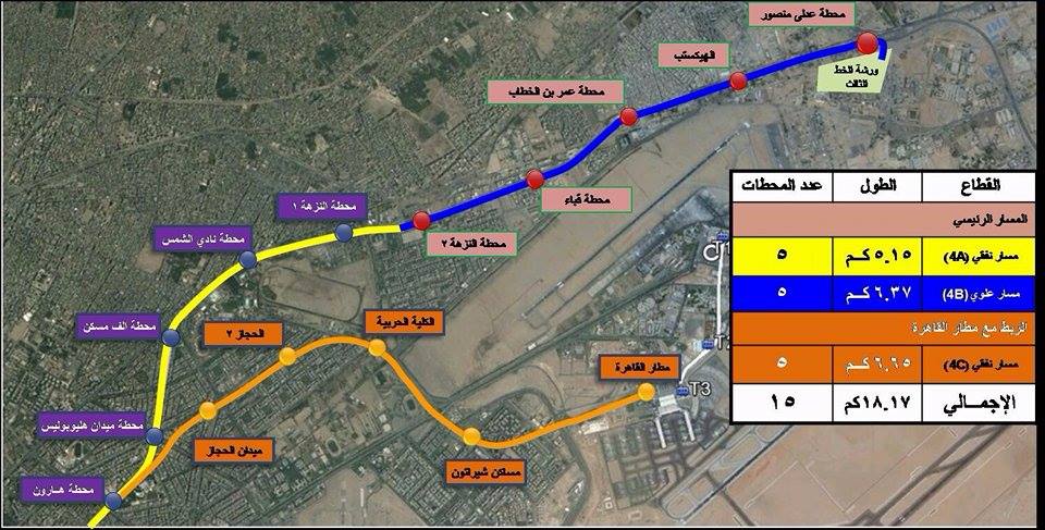 والجدير بالذكر ان محطة هليوبوليس تقع ضمن المرحلة الرابعة للخط الثالث لمترو الأنفاق والتي تمتد من محطة هارون بمصر الجديدة حتى محطة عدلي منصور بمدينة السلام ومطار القاهرة بطول 18 كليو وعدد 15 محطة نفقية وعلوية مسارين ثم يبدأ القطار المكهرب من مدينة السلام حتى العاشر من رمضان والعاصمة الإدارية الجديدة