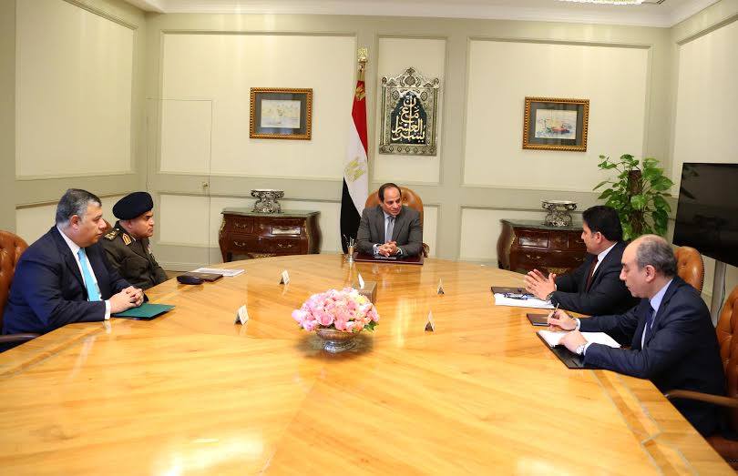 إجتمع الرئيس عبد الفتاح السيسي، اليوم بالفريق أول صدقي صبحي، وزير الدفاع والإنتاج الحربي، وحسام مغازي وزير الموارد المائية والري، وخالد فوزي رئيس المخابرات العامة لبحث ملفات “تنمية سيناء و سد النهضة الإثيوبى”