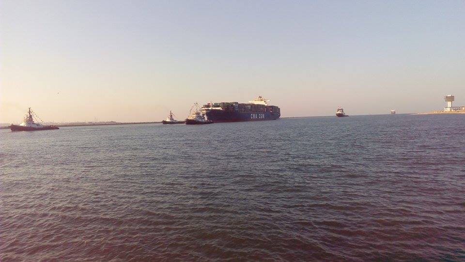 عبرت منذ قليل اول سفينه عملاقة تمر القناة الجانبيه بشرق بورسعيد وعلى متنها الفريق مهاب مميش رئيس الهيئة العامة لقناة السويس .