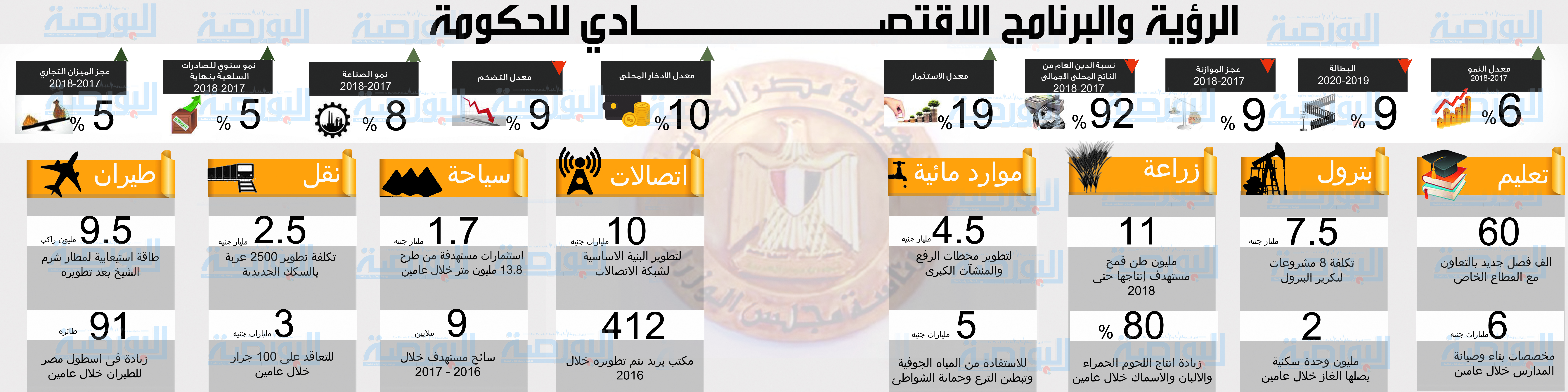 ينشر "البورصة نيوز" انفوجراف يوضح بالأرقام الرؤية والبرنامج الاقتصادي للحكومة المصرية [caption id="attachment_825537" align="alignnone" width="1024"]<img class="size-large wp-image-825537" src="http://www.alborsanews.com/beta/wp-content/uploads/2016/03/البيان2--1024x256.jpg" alt="برنامج الحكومة" width="1024" height="256" /> برنامج الحكومة[/caption] تصميم :محمد عيد