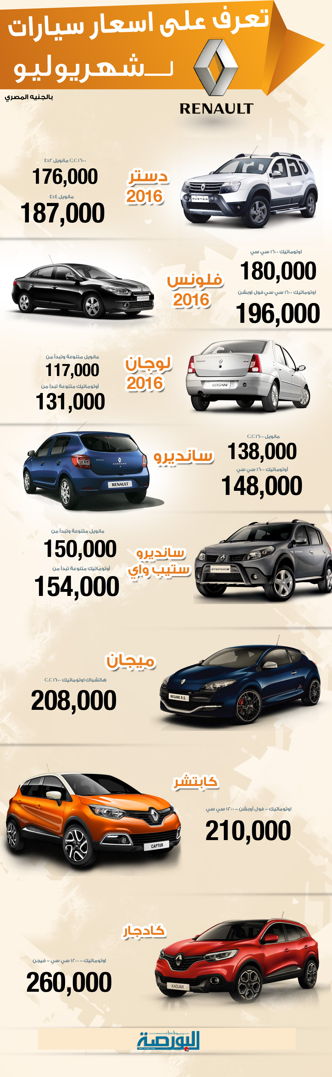 ينشر "البورصة نيوز" انفوجراف لاحدث اسعار سيارات رينو لشهر يوليو فى السوق المصري.