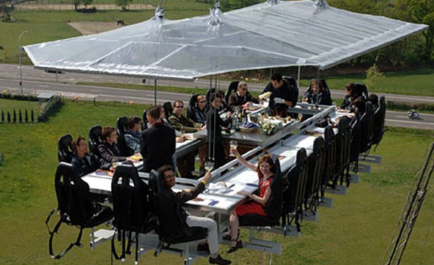 أشار إلى المطعم الطائر يعد أحد فروع الشركة الأم فى بلجيكا، ويتم تصميم طاولاته وفقًا لمعيار DIN 4112 للسلامة للتحقق من متانته وأمانه واختباره كل 3 أشهر.