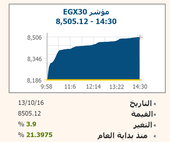 وصعد مؤشر EGX50 متساوي الأوزان بنسبة 2.42% ليغلق عند مستوى 1336.6 نقطة، وارتفع مؤشر EGX20 المُحاكي لصناديق الاستثمار بنسبة 4.4% ليغلق عند مستوى 8447.8 نقطة، وصعد مؤشر EGX70 بنسبة طفيفة بلغت 0.82% ليغلق عند مستوى 345.9 نقطة، كما ارتفع مؤشر EGX100 الأوسع نطاقًا بنسبة % ليستقر عند مستوى 790.7 نقطة.