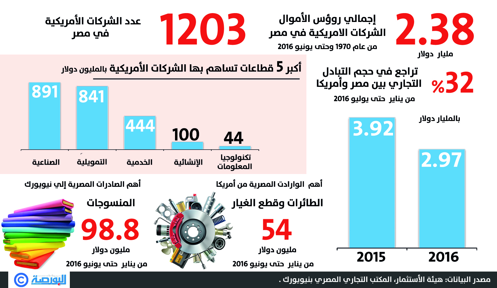 تعرض الحكومة المصرية، غدا الاثنين، مجموعة من الفرص الاستثمارية بعدد من القطاعات الصناعية، على مجموعة الشركات الأعضاء بالبعثة التجارية الأمريكية، التى تزور مصر حالياً.