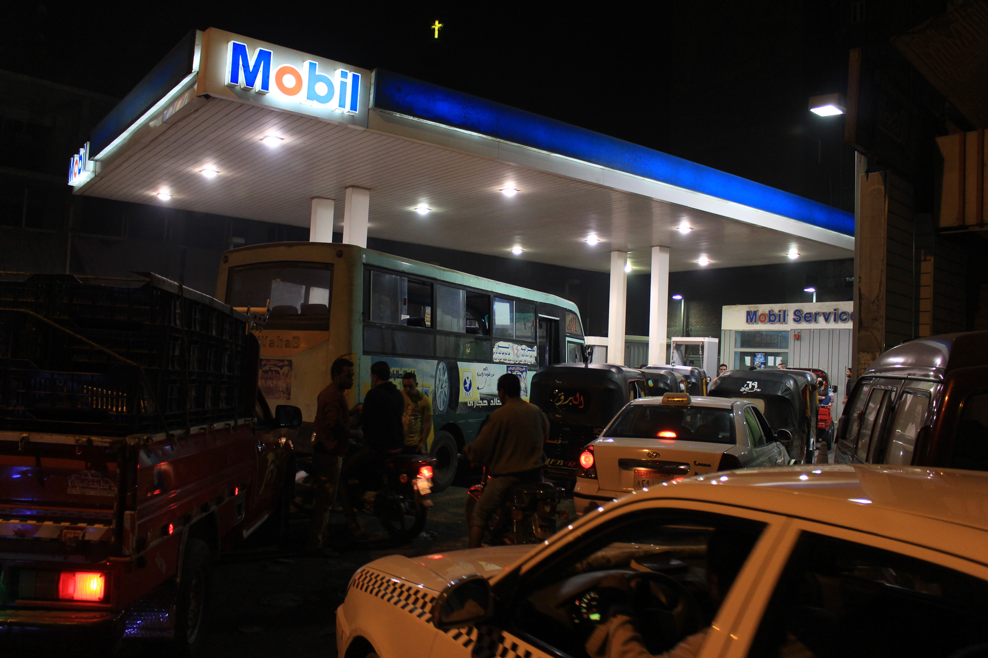بالصور ..إزدحام المواطنين امام محطات البنزين عقب تطبيق الاسعار الجديدة