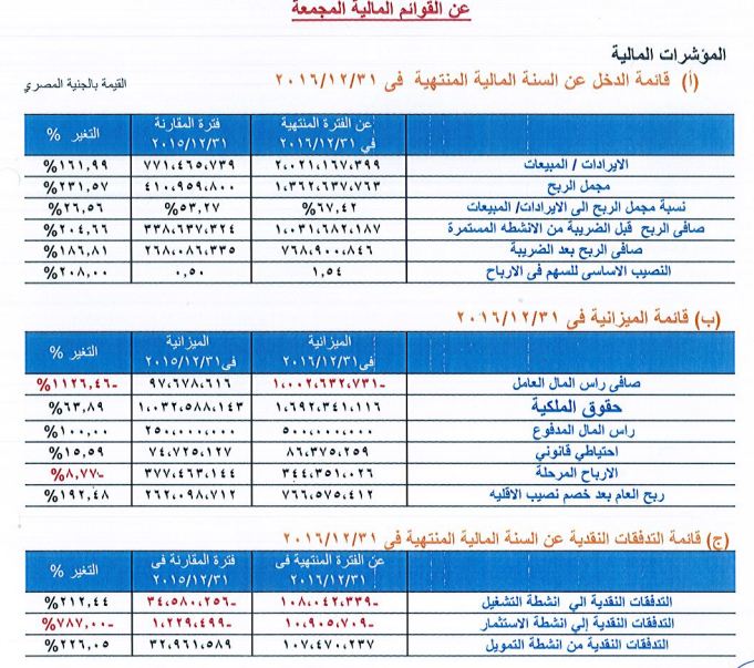 وبلغ النصيب الأساسي للسهم في الأرباح 1.54 جنيه عن 2016، مقابل 0.5 جنيه عن 2015.