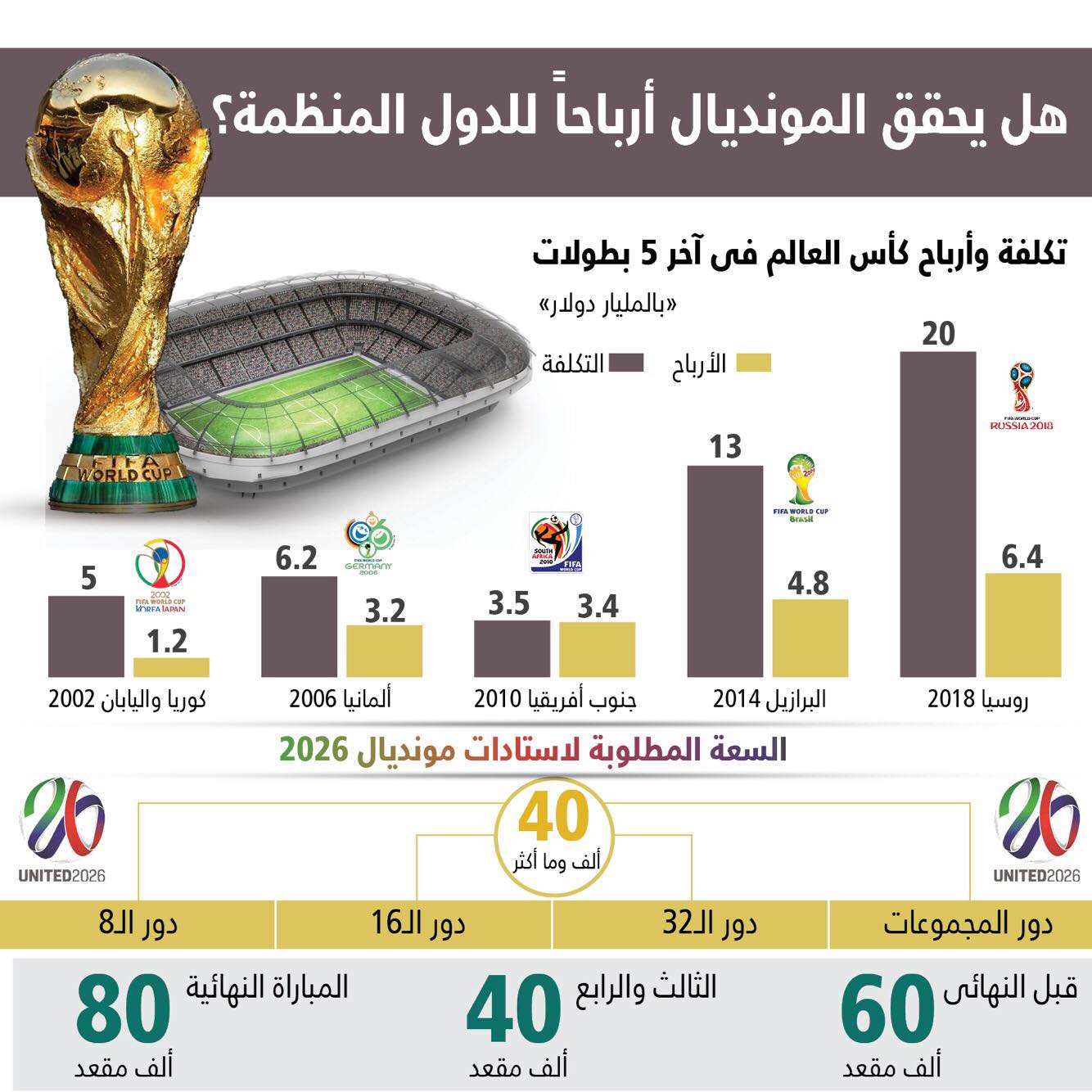 تصريح وزير الرياضة جاء مفاجئا فى ظل التكاليف الكبيرة التى باتت يتطلبها تنظيم أحداث رياضية بهذا الحجم، وهى تكاليف ستشهد مزيدا من الارتفاعات بعد إعلان الاتحاد الدولى لكرة القدم «فيفا» رفع أعداد الفرق المشاركة فى بطولات كأس العالم %50 لتصبح 48 دولة من بطولة عام 2026 بدلا من 32 دولة حاليا.