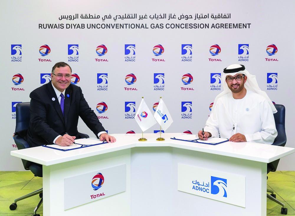 وأوضح بيان صادر عن أدنوك أن شركة توتال سوف تقوم باستكشاف وتقييم وتطوير امتياز حوض غاز الذياب غير التقليدي في منطقة الرويس، مشيرا إلى أن المشروع سوف يساعد أدنوك في الوصول إلى هدفها البالغ مليار قدم مكعب يوميا من إنتاج الغاز غير التقليدي بحلول عام 2030.