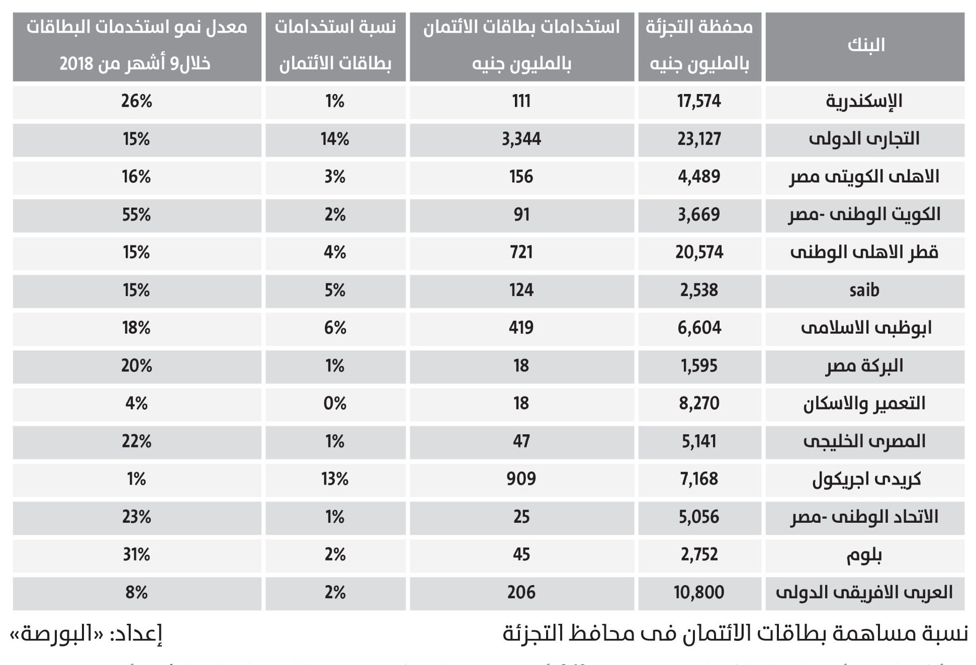 يأتى ذلك رغم أن البنوك باستثناء كريدى أجريكول والتعمير والاسكان حققت نمو ملحوظ فى استخدمات البطاقات الائتمانية خلال التسعة أشهر الأولى من 2019، وتراوحت معدلات النمو بين %1 و%31 .