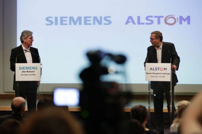 كانت سيمنس وألستوم تسعيان لدمج عملياتهما في السكك الحديدية من أجل المنافسة على نحو أكثر كفاءة مع سي.آر.آر.سي الصينية المملوكة للدولة في الأسواق العالمية وهي خطوة دعمتها الحكومتان الألمانية والفرنسية اللتان تشجعان إنشاء شركات صناعية عملاقة.