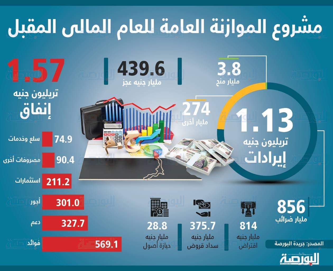 إنفوجراف يوضح مشروع الموازنة العامة للعام المالى المقبل