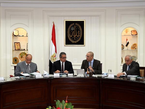 عقد الدكتور عاصم الجزار، وزير الإسكان والمرافق والمجتمعات العمرانية، اجتماعاً مع الدكتور خالد العنانى، وزير الآثار، واللواء خالد عبدالعال، محافظ القاهرة، واللواء أحمد راشد، محافظ الجيزة، لمتابعة خطط مشروعات تطوير منطقتى المتحف المصرى الكبير، ومتحف الحضارة بالفسطاط.