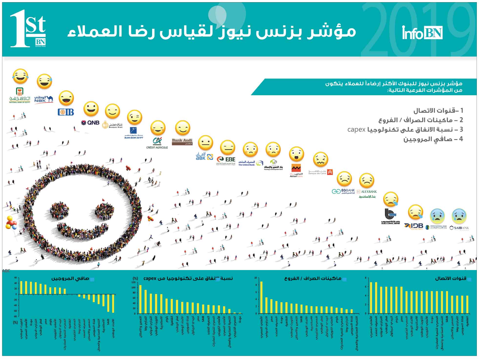 إنفوجراف مؤشر بزنس نيوز يوضح مدى رضا العملاء في التعامل مع البنوك .