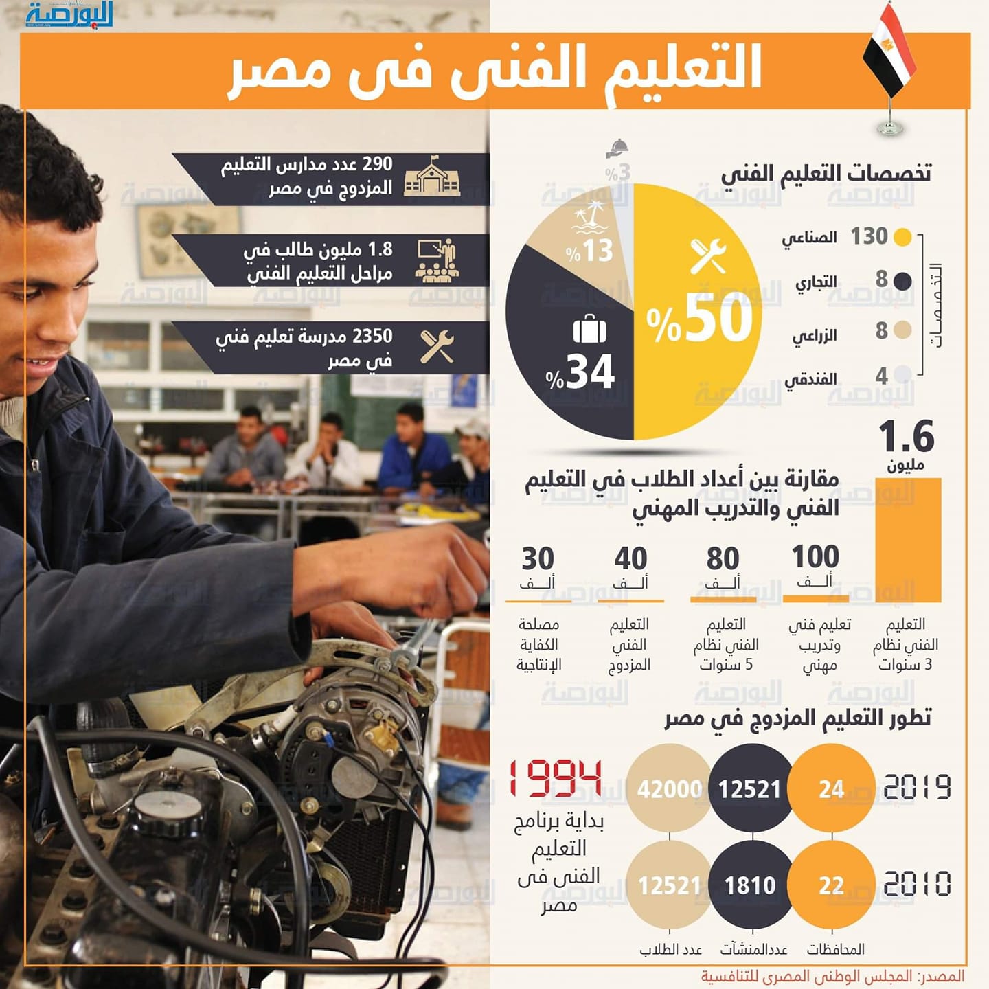 إنفوجراف يوضح تخصصات التعليم الفنى فى مصر وتطور التعليم المزدوج