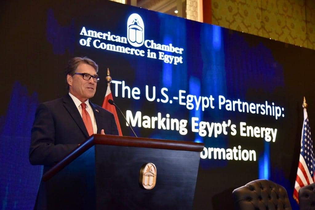 قال ريك بيرى وزير الطاقة الأمريكي إن الشركات الأمريكية تضع السوق المصرية في مقدمة اهتماماتها، فضلا عن أننا مستعدون لدعم مصر بمختلف أنواع التكنولوجيا التى تعزز من الدول المحوري لمصر في مجال الطاقة.