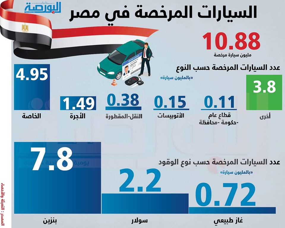 إنفوجراف يوضح عدد السيارات المرخصة فى مصر