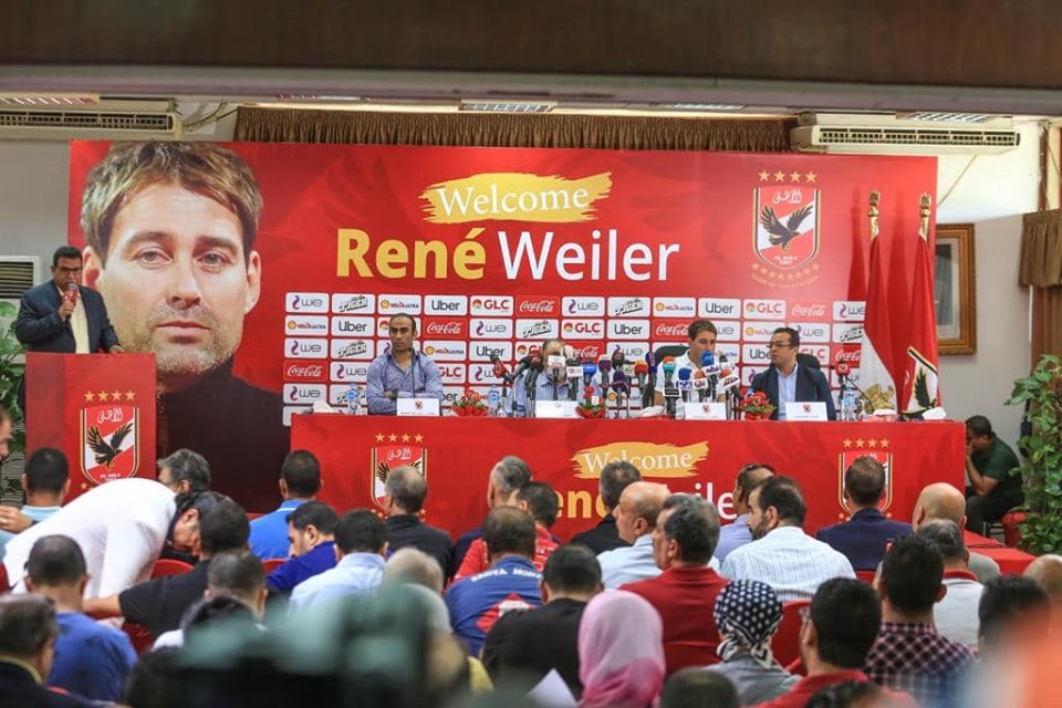 قدم النادي الأهلي مدربه الجديد للفريق الأول لكرة القدم السويسري رينيه فايلر لوسائل الإعلام، في مؤتمر صحفي .