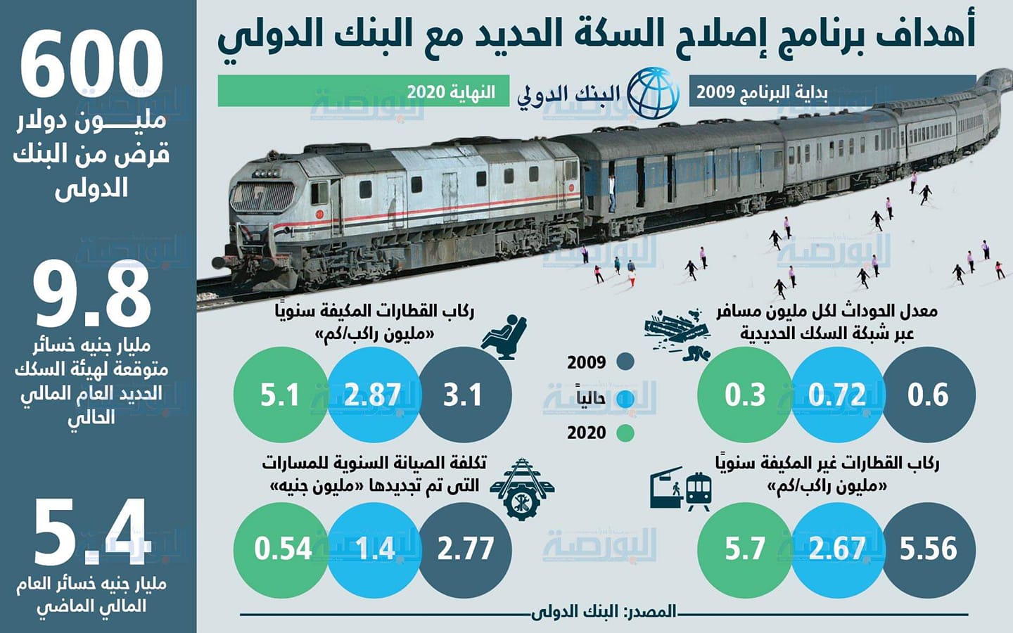 إنفوجراف يوضح أهداف برنامج إصلاح السكة الحديد مع البنك الدولى