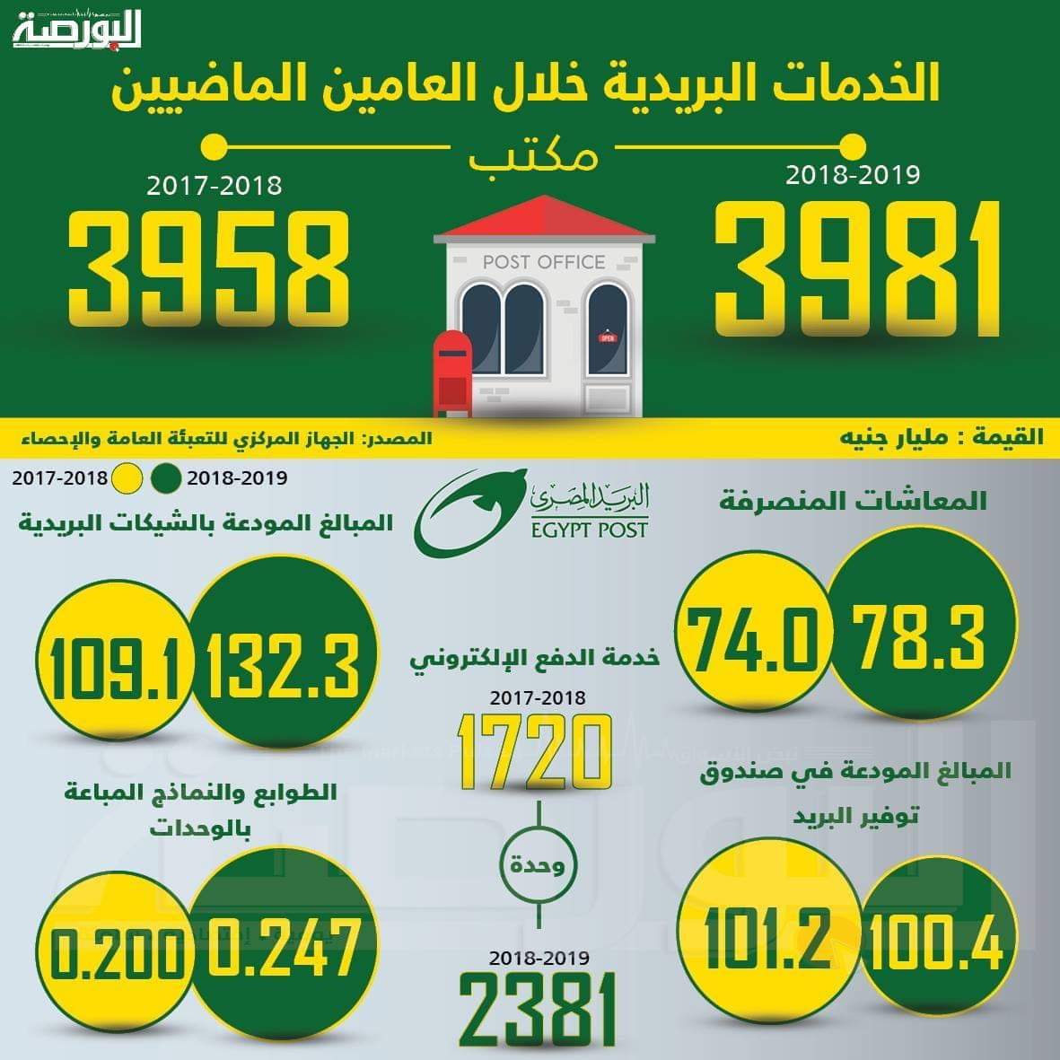 إنفوجراف يوضح الخدمات البريدية خلال العامين الماضيين