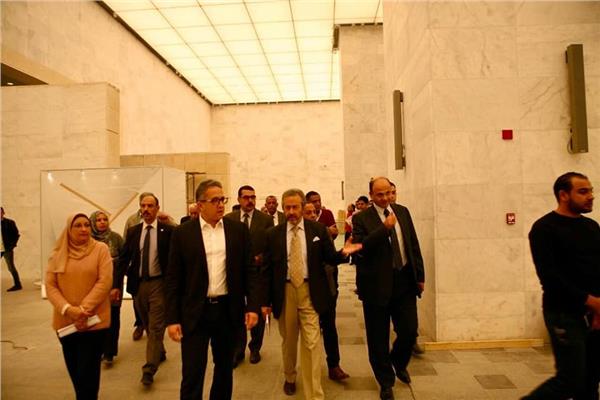 تفقد الدكتور خالد العنانى وزير الدولة لشئون الآثار، آخر مستجدات العمل بقاعات العرض المركزية وقاعة المومياوات التى سيتم افتتاحها خلال الفترة المقبلة، داخل المتحف القومى للحضارة المصرية بالفسطاط.