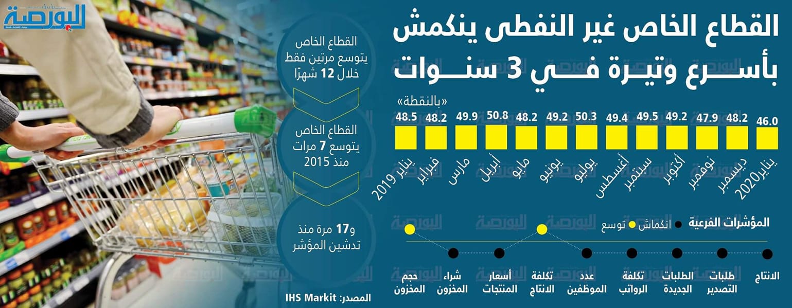 إنفوجراف القطاع الخاص غير النفطى ينكمش بأسرع وتيرة فى 3 سنوات