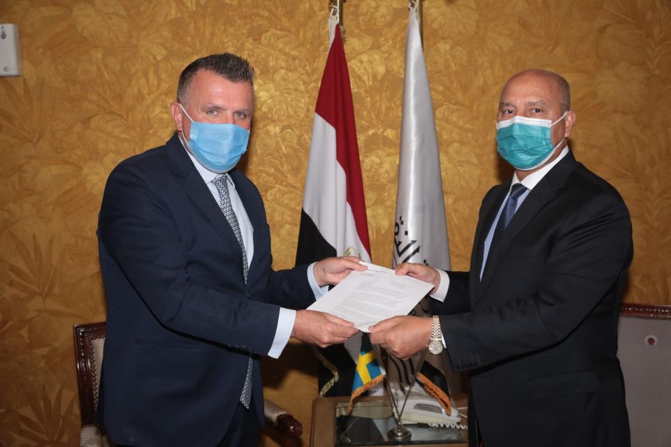وسلَّم السفير السويدى خطاباً من تومس إنروث، وزير البنية التحتية السويدى لوزير النقل المصرى؛ يتضمن التأكيد على أهمية التعاون المشترك فى مجال النقل المستدام، والعمل على إدخال منظومة (BRT)؛ الأتوبيسات السريعة فى مصر، واستعداد الجانب السويدى لدعم مصر فى هذه المجالات بما لدى السويد من سجل عالمى حافل وحلول لمنظومة الأمان على الطرق ومنظومة النقل المستدام بشكل عام، وأنظمة النقل السريع بالحافلات بشكل خاص.