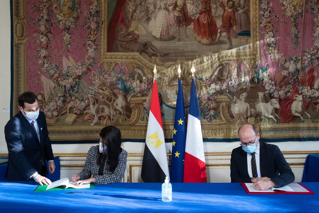 ووقعت وزيرة التعاون الدولى، 7 وثائق، مع مدير الوكالة الفرنسية للتنمية الدولية، وهى تمويل برنامج دعم سياسات قطاع الطاقة، بقيمة 150 مليون يورو، ومليون يورو منحة، بهدف بناء القدرات؛ لوضع منهجية وأداة تقييم للأثر الاجتماعى والاقتصادى، المباشر وغير المباشر، للوائح والسياسات التى تم إعدادها بواسطة جهاز تنظيم مرفق الكهرباء وحماية المستهلك؛ وتشجيع النقل الإلكترونى؛ للبدء فى تحويل قطاع النقل إلى مسار أكثر مراعاةً للبيئة؛ وتطبيق المعايير الدولية للوائح تطوير شركات خدمات الطاقة والتوصيات المتعلقة بمصر.