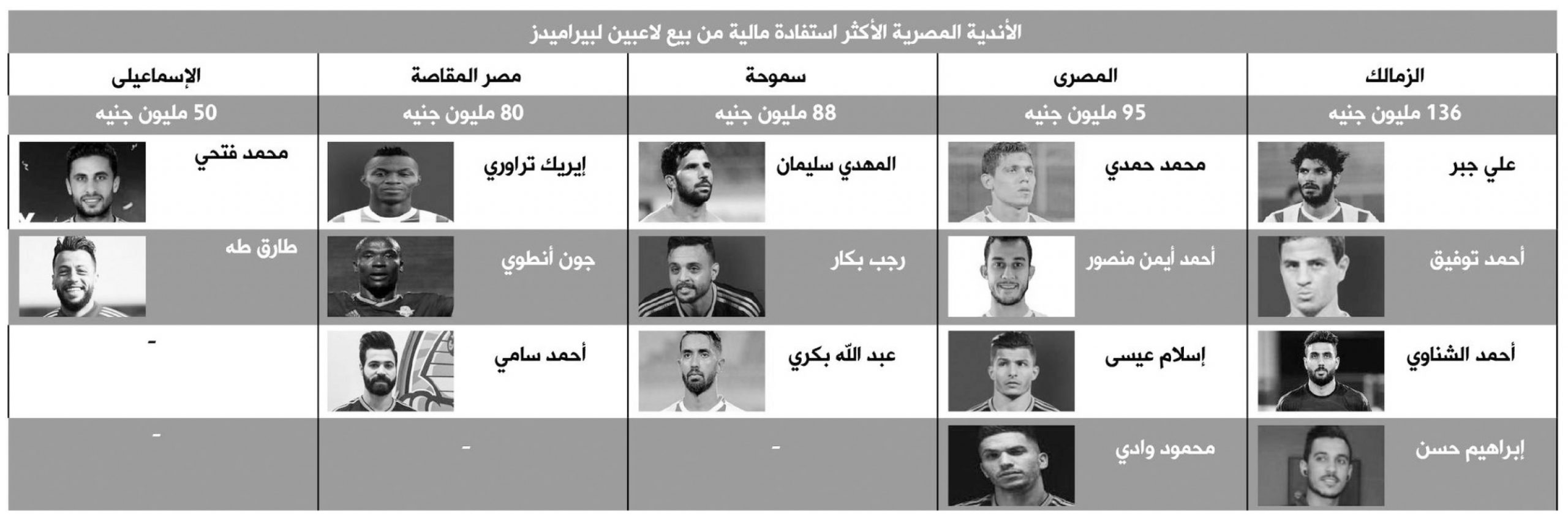 وفقا للتقرير فى عام 2019، جاءت مصر فى الصدارة بالنسبة للقارة الأفريقية، وفى المركز 24 على مستوى العالم من حيث ضم اللاعبين من الخارج، بتكلفة مالية بلغت 33.7 مليون دولار من أصل 40.8 مليون دولار إجمالى انتقالات قارة أفريقيا، وفى المركز 39 عالمياً من حيث تصدير اللاعبين للدوريات الأخرى بقيمة 17.5 مليون دولار.