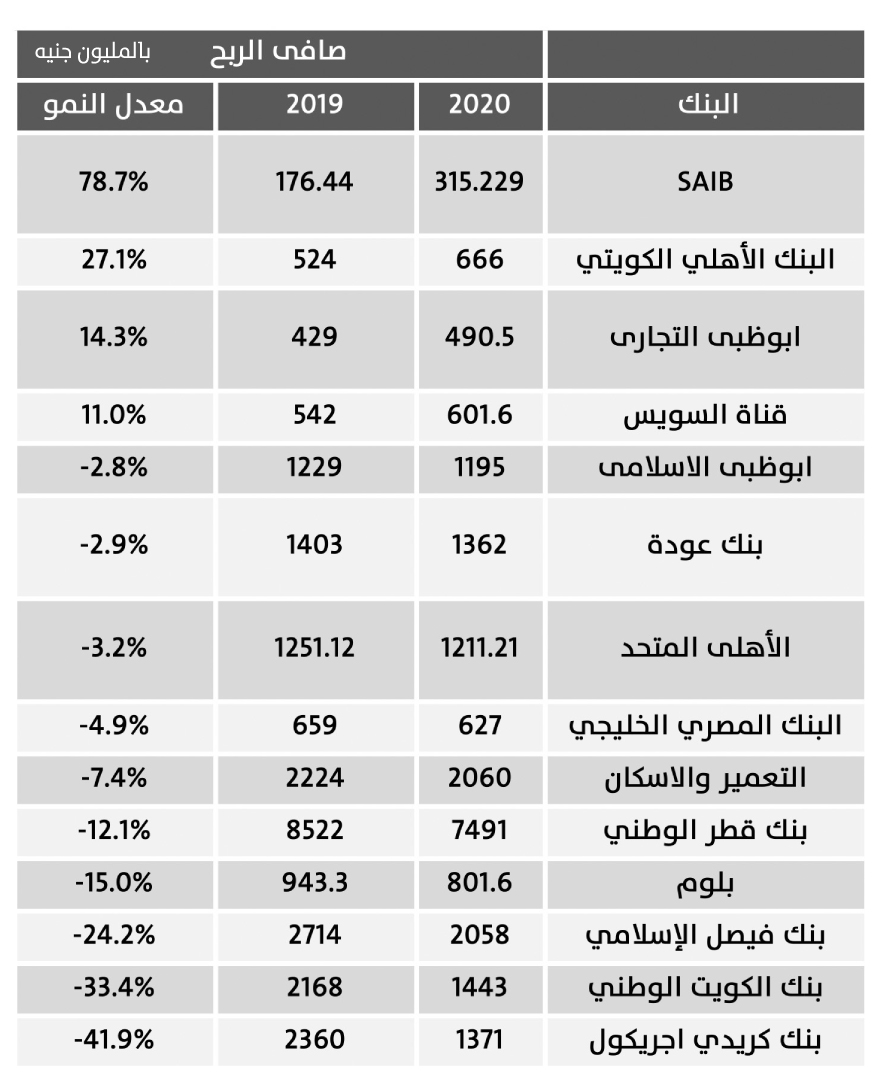 ونجح بنك الشركة المصرفية العربية SAIB فى النمو بأرباحه 79% لتصل إلى 315 مليون جنيه مقابل 176 مليون جنيه وذلك رغم تحوله لتكوين مخصصات بشكل عام بقيمة 129 مليون جنيه، مقابل تحرير مخصصات بقيمة 4 ملايين جنيه خلال 2019، وانخفاض صافى الدخل من العمولات لديه 30%.