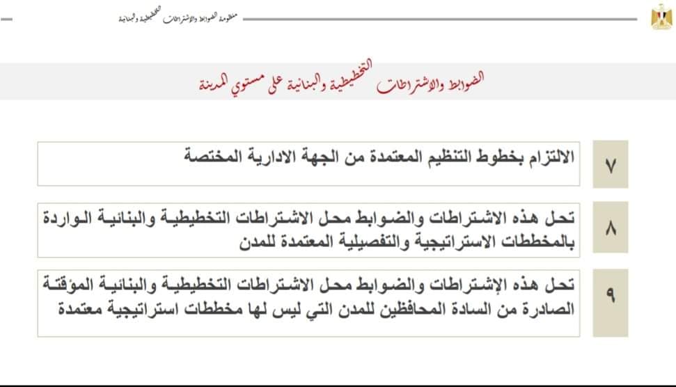 وأشار إلى أن الدولة تسعى للوصول لأفضل السبل لضبط منظومة العمران وحوكمة منظومة التراخيص للقضاء على البناء العشوائى ووقف فوضى التراخيص بما يحقق مصلحة الوطن والمواطنين وايجاد حياة بها متنفس للمواطنين و تنظيم الشكل العام.