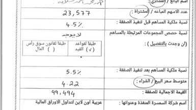 وأضافت الشركة في بيان لها أن العميل اشترى خلال تعاملات الأسبوع الماضي، 23.577 ألف سهم بقيمة 99.494 ألف جنيه بمتوسط سعر 4.22 جنيه للسهم الواحد.