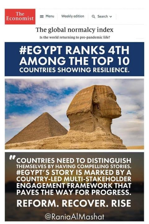 وأوضحت أن مجيء مصر في المرتبة الرابعة يعكس المرونة التي تعاملت بها الدولة مع جائحة كورونا، وقدرتها على الصمود في مواجهة الأزمة من خلال الإصلاحات الاقتصادية والاجتماعية، في الوقت الذي تواصل فيه سعيها نحو تنفيذ رؤيتها التنموية 2030 وتحقيق أهداف التنمية المستدامة.