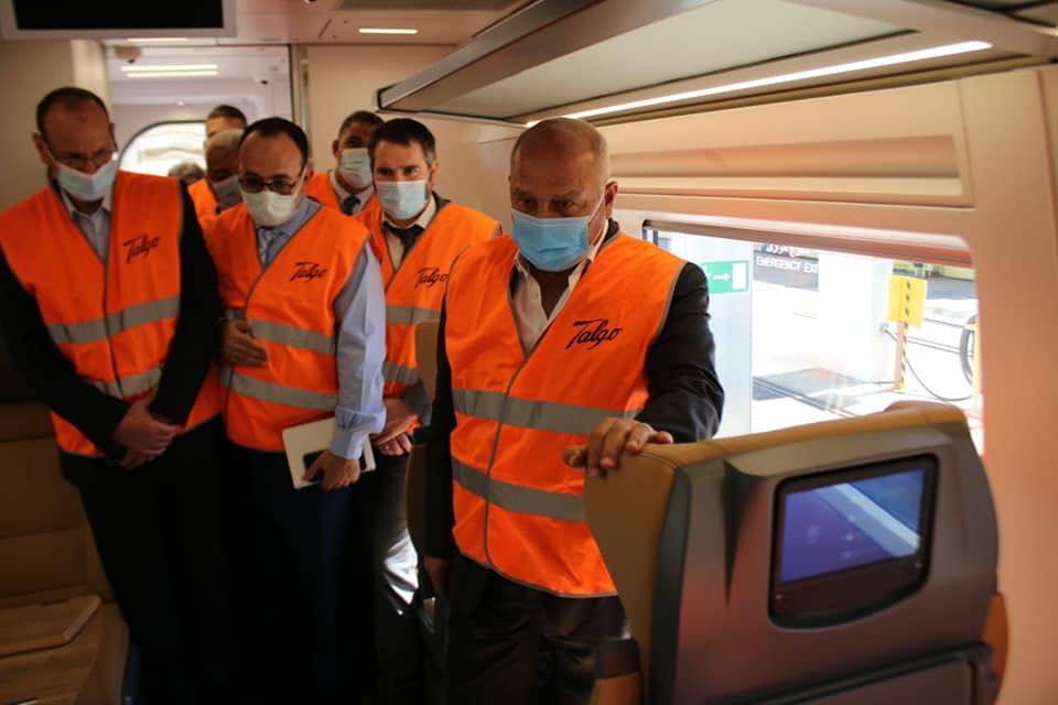 الوزير :قطارات تالجو تمثل إحدى ثمار التعاقدات الضخمة التي تمت تحت رعاية فخامة رئيس الجمهورية لتطوير قطاع النقل وخاصة السكك الحديدية، بهدف الارتقاء بها وفقا لأحدث النظم التكنولوجية المعمول بها فى العالم