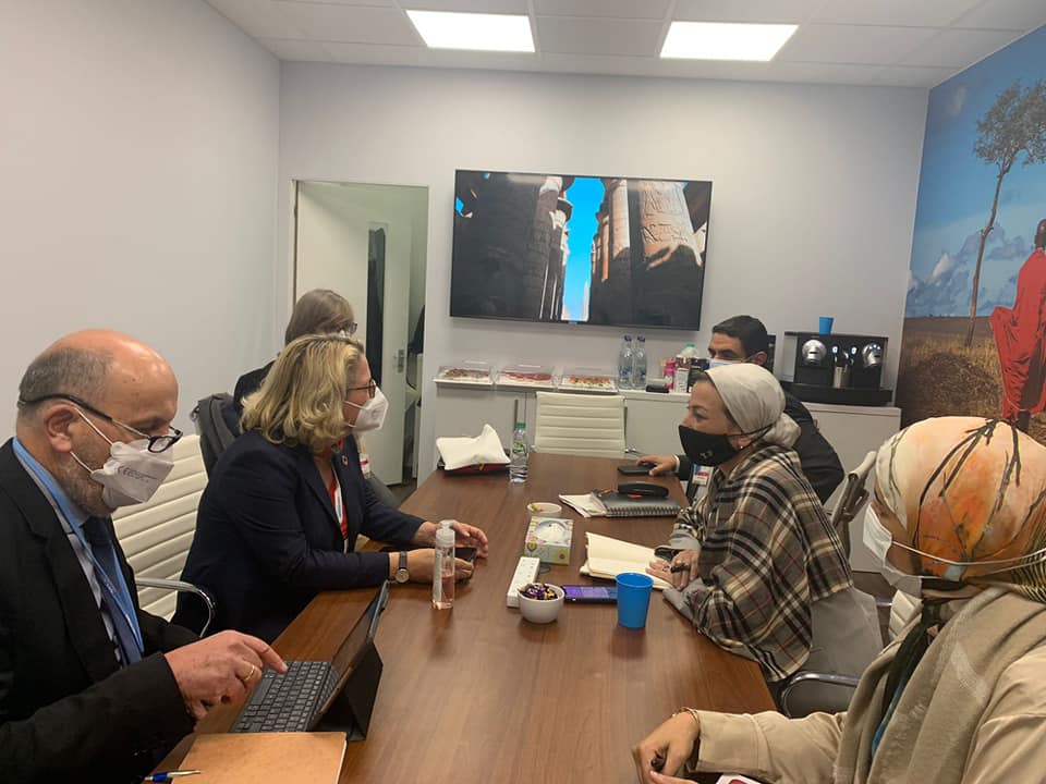 التقت الدكتورة ياسمين فؤاد وزيرة البيئة بسفينا شولتسه وزيرة البيئة الألمانية والوفد المرافق لها لمناقشة سبل دعم التعاون بين البلدين في مجال البيئة، وذلك على هامش مشاركة وزيرة البيئة المصرية في الشق الوزاري لمؤتمر الأطراف لاتفاقية التغيرات المناخية بجلاسكو COP26.