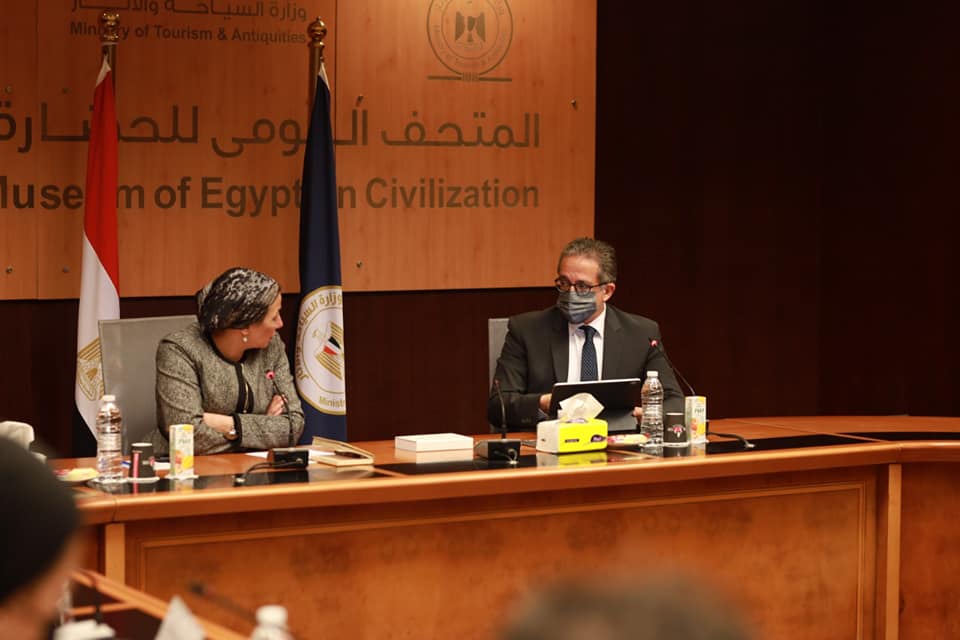 واستقبل الدكتور خالد العناني وزير السياحة والآثار بالمتحف القومي للحضارة المصرية بالفسطاط، الدكتورة ياسمين فؤاد وزيرة البيئة والوفد المرافق لها، حيث عقدا اجتماعا موسعا لمناقشة الاستعدادات والتجهيزات السياحية الخاصة باستضافة مصر لمؤتمر الأطراف السابع والعشرين لاتفاقية الأمم المتحدة لتغير المناخ “COP27 ” في نهاية العام القادم بمدينة شرم الشيخ، وذلك بحضور رئيس الإتحاد المصري للغرف السياحية ورؤساء كل من غرف المنشآت الفندقية، وشركات ووكالات السفر والسياحية، والغوص وممثلي وزارة الخارجية وبعض قيادات الوزارتين وممثلي الجهات المعنية.