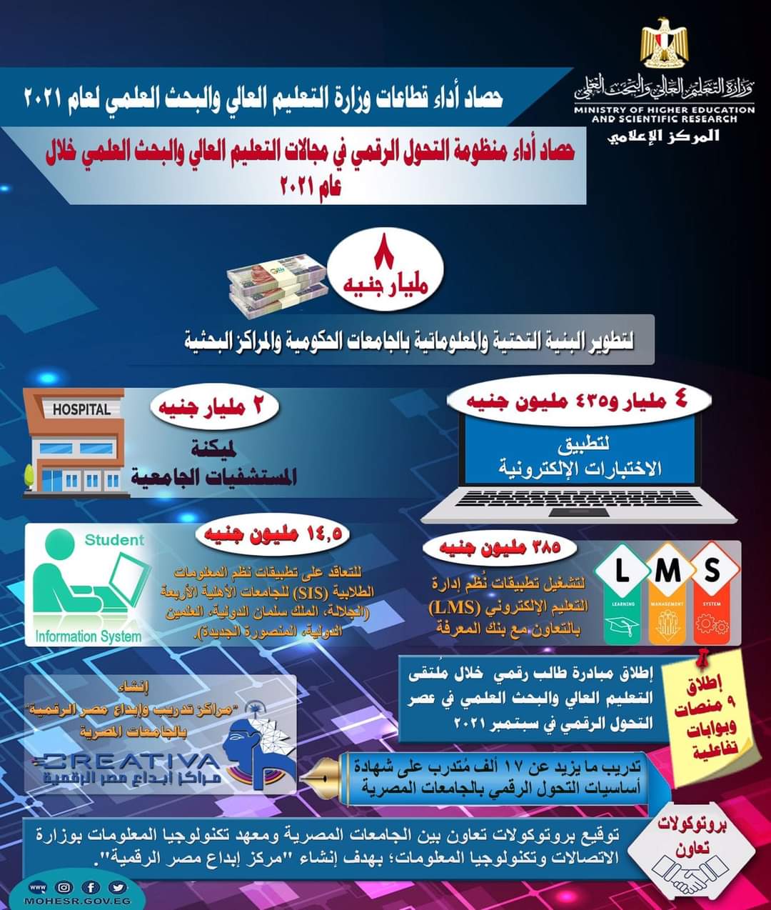 حصاد أداء منظومة التحول الرقمي في مجالات التعليم العالي والبحث العلمي خلال عام 2021