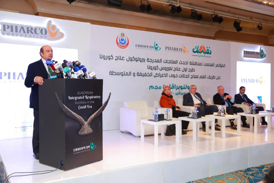 أضاف خلال المؤتمر الصحفى الذى عقدته الشركة اليوم أن العلاج الجديد يستخدم فى حالات الإصابات الخفيفة والمتوسطة ويقتصر بيع الدواء خلال الفترة الحالية على المستشفيات المعالجة لمرضى كورونا من البالغين فوق 18 سنة.