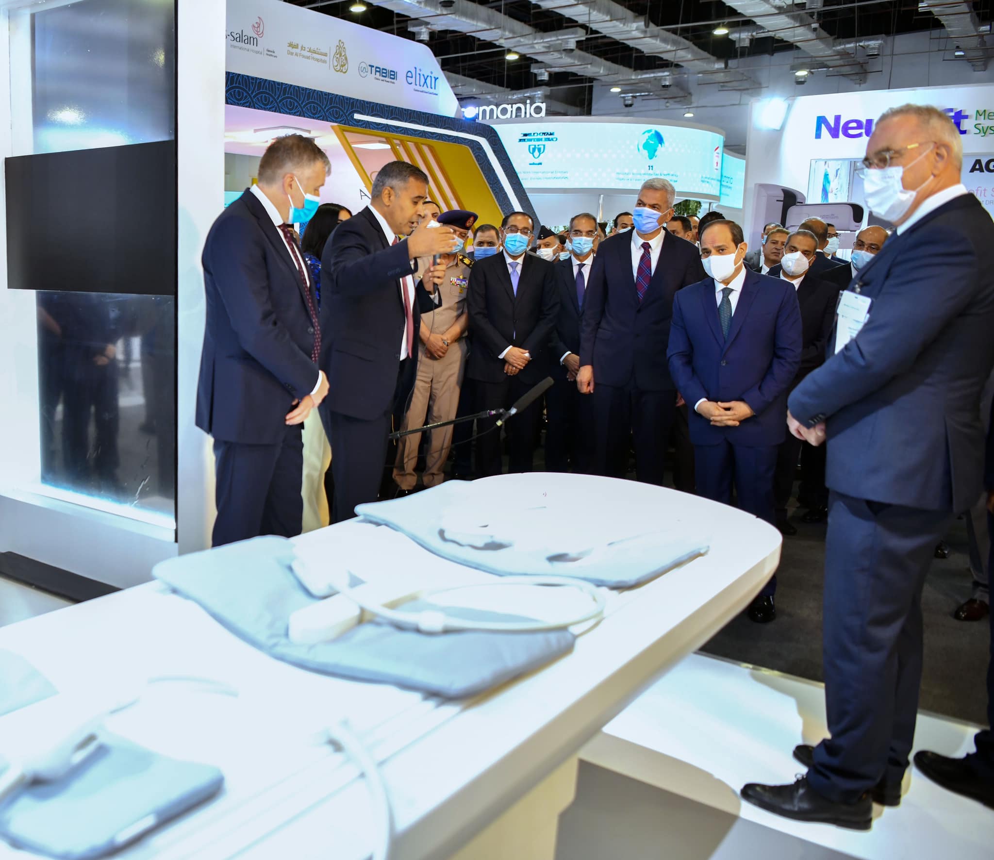 واستمع الرئيس السيسي إلى شرح مفصل من عدد من ممثلي شركات الأدوية العالمية والتي لها تعاون مع مصر، كما تفقد الرئيس عددًا من الأجهزة الطبية الحديثة التي تم عرضها.