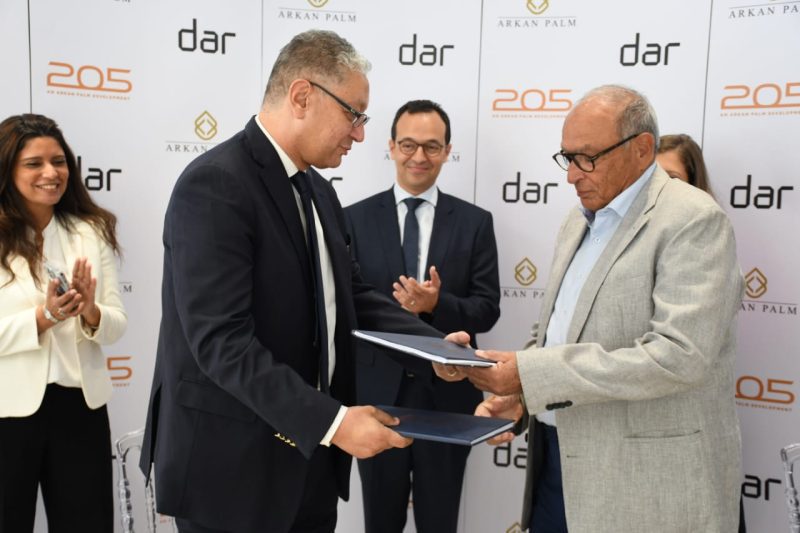 وقعت شركة “أركان بالم للاستثمار العقارى” بروتوكول تعاون مع شركة “دار” للتصميمات الهندسية، لإعداد التصميمات المعمارية والإنشائية لمنطقة الأبراج بمشروع “205” فى مدينة الشيخ زايد، والذى يتم تنفيذه بالشراكة مع هيئة المجتمعات العمرانية.