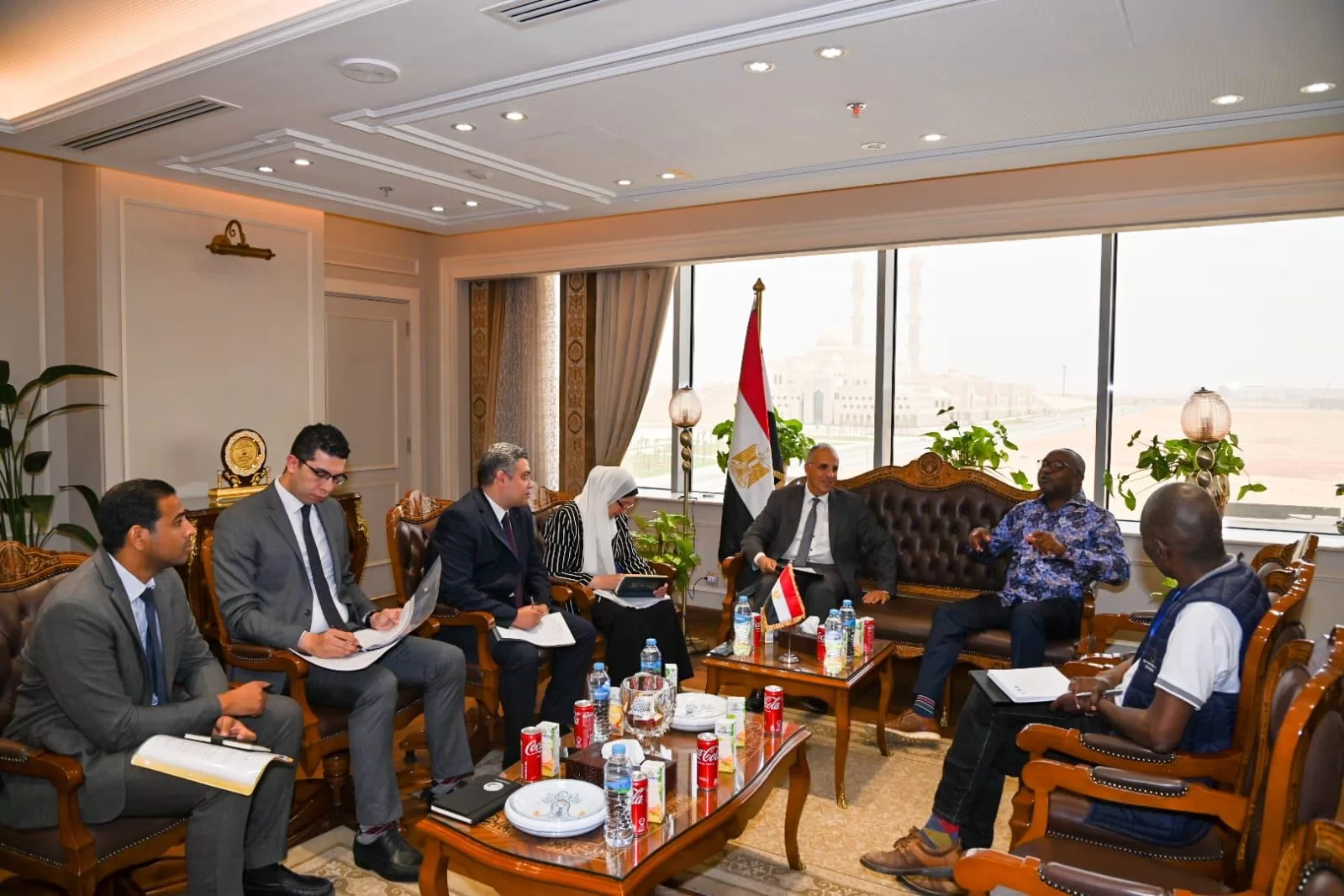 جاء ذلك خلال لقاء عقده وزير الري مع وزير مع ديفيد مارابيرا وزير الأراضي والزراعة والمياه والمناخ والتنمية الريفية بزيمبابوي، بمقر وزارة الموارد المائية والري بالعاصمة الإدارية الجديدة، على هامش استضافة مصر لفعاليات الاجتماع الثالث عشر للجمعية العمومية لمجلس وزراء المياه الأفارقة المعني بالمياه (AMCOW) خلال الفترة من 13 إلى 15 يونيو الجاري.