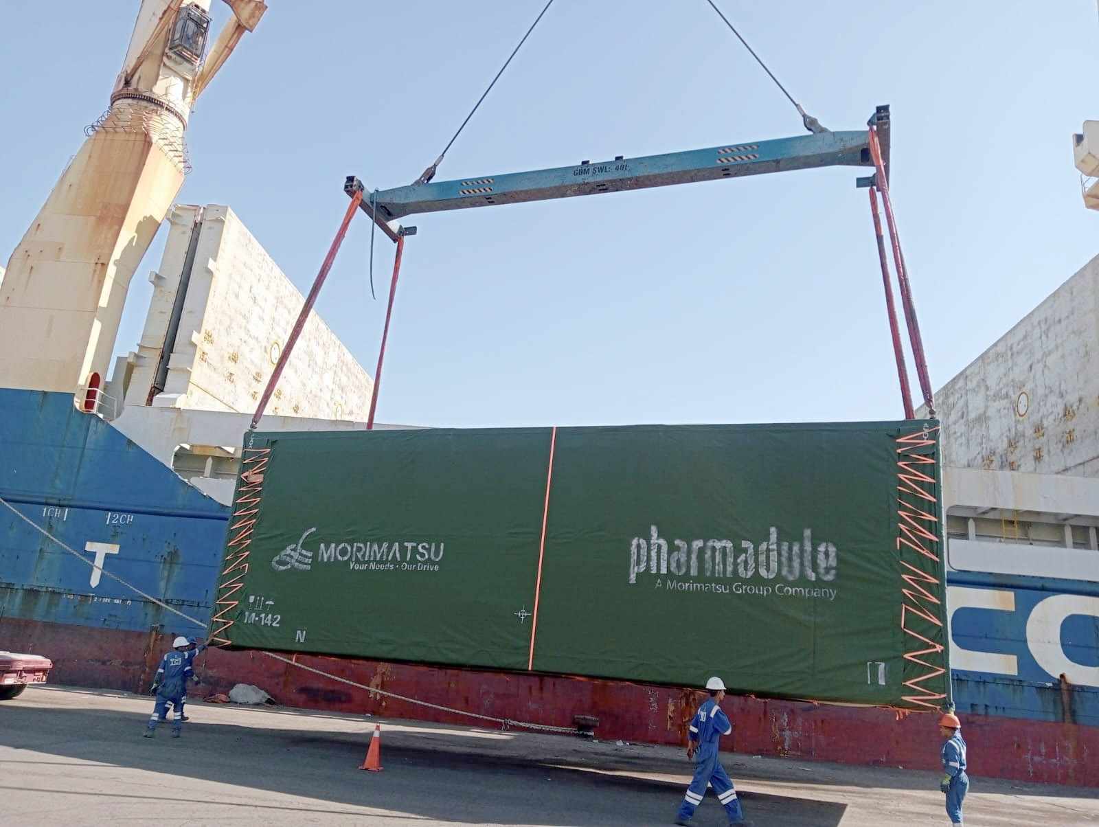 وانتهت السفينة، من تفريغ 136 طرد، وحاويات بوزن 2630 طن وتشمل وحدات لهياكل خرسانية من إنتاج شركة فارما ديول السويدية، لصالح الشركة المصرية الدولية للصناعات الدوائية (إيبيكو) لبناء مصنع (إيبيكو 3)؛ لإنتاج المستحضرات والبدائل الحيوية فى العاشر من رمضان.