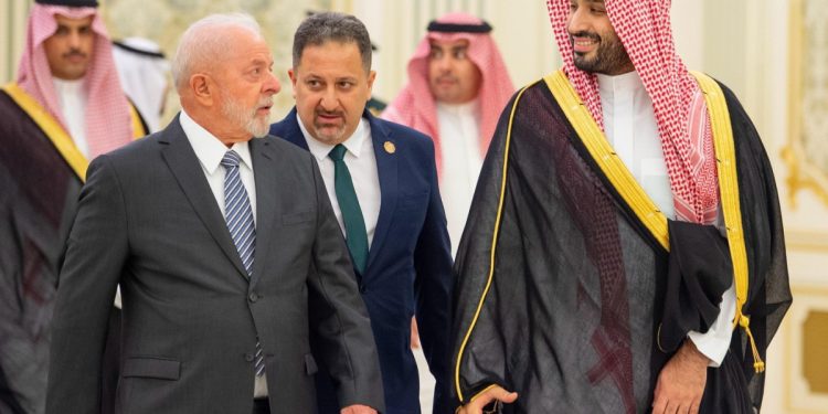 جاء ذلك على هامش استقبال الأمير محمد بن سلمان، ولي العهد رئيس مجلس الوزراء، الرئيس لويز إيناسيولولا دا سيلفا رئيس جمهورية البرازيل الاتحادية، وقد جرى خلال جلسة المباحثات الرسمية بين الجانبين استعراض العلاقات الثنائية، وتعزيز التعاون المشترك، وبحث الفرص الاستثمارية، إلى جانب بحث تطورات الأوضاع الإقليمية والدولية.
